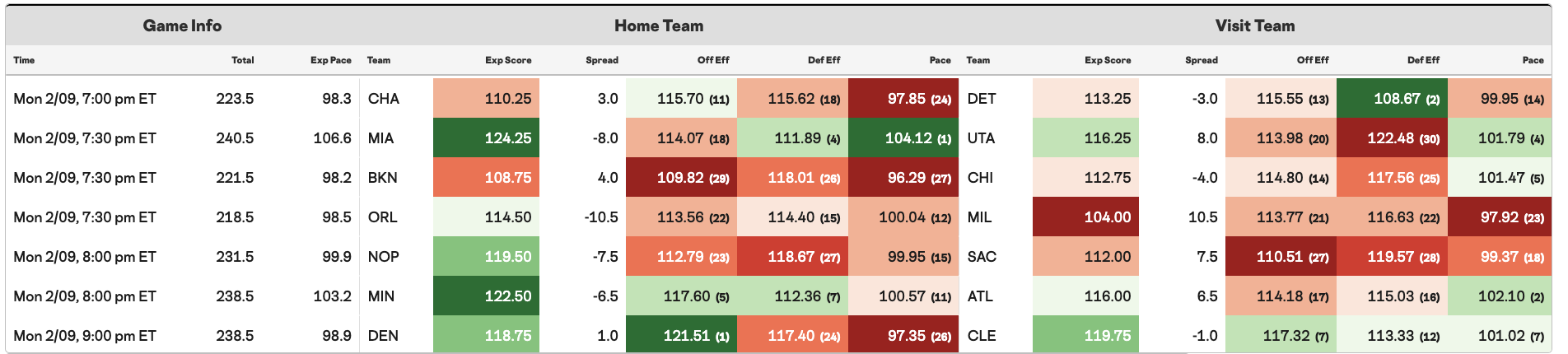 The All-Star weekend is upon us, but we'll still have four days of DFS action to explore as the break approaches. Monday's FanDuel main slate features seven games, and we'll need to keep our ear to the ground for injury updates for a few teams as lineup lock nears. My endorsements morphed into a bit of a stars-and-scrubs festival, as I targeted several players below the median salary in an effort to snag some high-salary options.